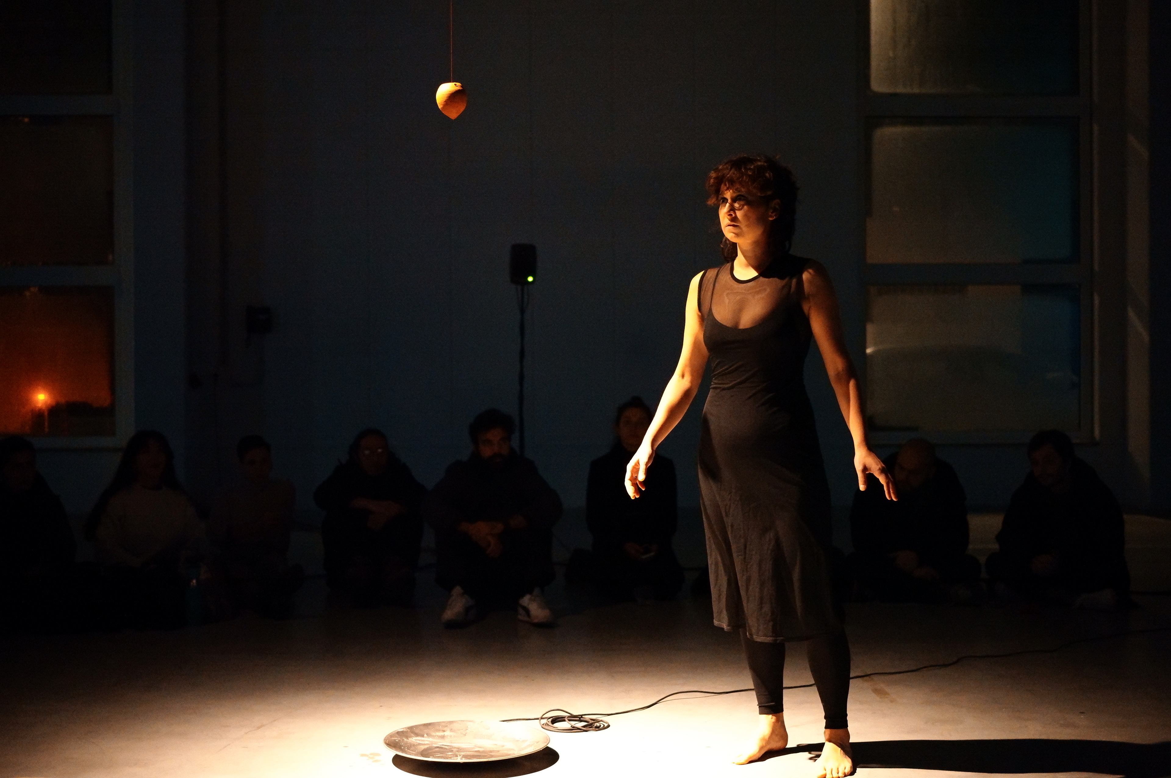 Alongside this, an improvised dance performance inspired by the idea of immediate experience, in which the dancer reacts directly to internal and external stimuli giving visual form to the circular soundscape. The dancer explores frequencies that emulate the expansion and contraction of the myth.